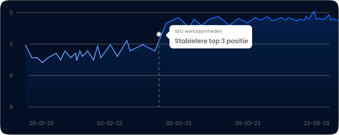 De voortgang wordt gemeten via belangrijke KPI’s zoals rankings, organisch verkeer, conversies en leads. Je ontvangt duidelijke, periodieke rapportages met inzichten en concrete vervolgstappen.